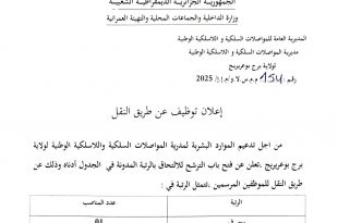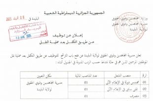 أكمل القراءة »مسابقة توظيف عن طريق النقل في جامع الجزائر