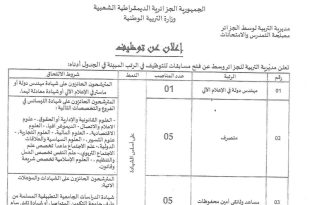 أكمل القراءة »اعلان عن توظيف في عدة مناصي ادارية بمديرية التربية للجزائر وسط