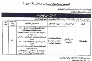 أكمل القراءة »إعلان عن توظيف بمديرية التجارة لولاية قالمة