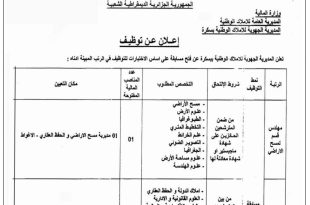 وزارة المالية المديرية العامة للأملاك الوطنية المديرية الجهوية للأملاك الوطنية بتلمسان ads إعلان عن توظيف تعلن المديرية الجهوية للأملاك الوطنية بتلمسان عن فتح توظيف عن طريق الإختيار المهني للإلتحاق بمناصب الشغل المبينة أدناه: اعلان توظيف في مؤسسة اتصالات الجزائر اعلان عن مسابقات توظيف بمديرية …
