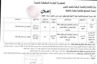أكمل القراءة »إعلان عن توظيف بالمديرية الجهوية للأملاك الوطنية ببسكرة في المسيلة الأغواط