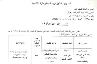 أكمل القراءة »إعلان عن توظيف بمديرية الضرائب لولاية تلمسان