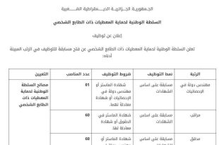 أكمل القراءة »إعلان عن توظيف بالسلطة الوطنية لحماية المعطيات ذات الطابع الشخصي