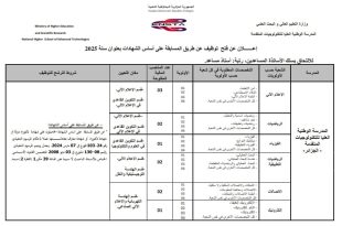 وزارة التعليم العالي والبحث العلمي المدرسة الوطنية العليا للتكنولوجيات المتقدمة ads إعلان عن فتح توظيف عن طريق المسابقة على أساس الشهادات بعنوان سنة 2025 للالتحاق بسلك الأساتذة المساعدين، رتبة: أستاذ مساعد. المدرسةالشعبة حسب الأولوياتالتخصصات المطلوبة في كل شعبة حسب الأولويةالأولويةعدد المناصب المالية المفتوحةمكان التعيينشروط …