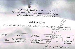 أكمل القراءة »إعلان عن توظيف بالمركز الوطني للبحث المطبق في هندسة مقاومة الزلازل