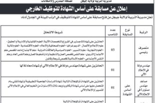 وزارة التربية الوطنية مديرية التربية لولاية جيجل مصلحة التمدرس والامتحانات ads إعلان عن مسابقة على أساس الشهادة للتوظيف الخارجي تعلن مديرية التربية لولاية جيجل عن فتح مسابقة على أساس الشهادة للتوظيف في الرتب المبينة في الجدول أدناه: الرتبةنوع المسابقةعدد المناصبشروط الالتحاقمتصرف رئيسيعلى أساس الشهادة03الحائزين …