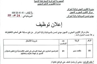 أكمل القراءة »مركز التكوين المهني والتمهين شريف مرسلي ببئر التوتة الجزائر العاصمة توظف: