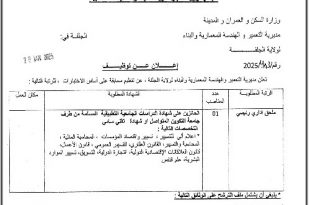 أكمل القراءة »إعلان عن توظيف بمديرية التعمير والهندسة المعمارية والبناء لولاية الجلفة