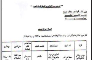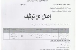 وزارة التربية الوطنية مديرية التربية لولاية ادرار مصلحة التمدرس و الامتحانات ads إعلان عن توظيف تعـلن مديرية التربية لولاية ادرار عن فتح مسابقة على أساس الاختبار للالتحاق بالمناصب التالية: إعلان عن توظيف بالمجلس الأعلى للشباب: الجزائر العاصمة، البليدة، تيبازة، بومرداس. إعلان توظيف في مديرية …