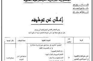 الجمهورية الجزائرية الديمقراطية الشعبية ولاية الجلفة دائرة الإدريسية بلدية عين الشهداء ads إعلان توظيف عن طريق المسابقة على أساس الشهادات يعلن رئيس المجلس الشعبي البلدي لبلدية عين الشهداء عن مسابقة توظيف على النحو التالي: المنصب: مهندس دولة للإدارة الإقليمية في عدد المناصب: 01 نوع …