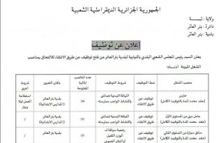 إعلان عن توظيف ببلدية بئر العاتر ولاية: تبسة