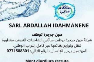 SARL ABDALLAH IDAHMANENE إعلان التوظيف ads مون جرجرة توظف. شركة مون جرجرة توظف سائقي الشاحنات النصف مقطورة لنقل وتوزيع بضائعها عبر كامل التراب الوطني. للمهتمين يرجى الاتصال بالرقم التالي: 0771588301 Mont djurdjura recrute. La SARL Mont djurdjura recrute des chauffeurs de camions semi-remorques pour …