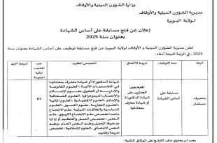 أكمل القراءة »إعلان عن فتح مسابقة على أساس الشهادة بعنوان سنة 2025