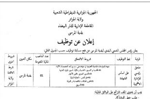 أكمل القراءة »إعلان عن توظيف ببلدية المرسى ولاية الجزائر