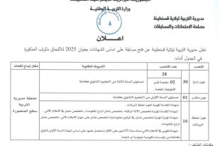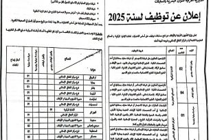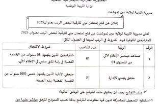أكمل القراءة »إعلان عن فتح مسابقة توظيف بعنوان 2025 بمديرية التربية لولاية عين تموشنت