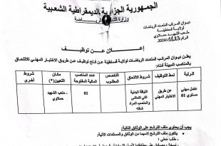 أكمل القراءة »إعلان عن توظيف بديوان المركب المتعدد الرياضات لولاية تيبازة