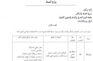 أكمل القراءة »إعلان عن مسابقة توظيف في مديرية الصحة والسكان لولاية بسكرة