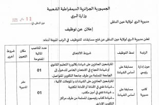 أكمل القراءة »هذا إعلان عن توظيف في مديرية الري لولاية عين الدفلى