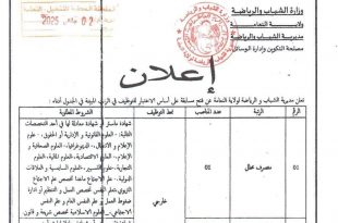 أكمل القراءة »إعلان عن توظيف في مديرية الشباب والرياضة لولاية باتنة