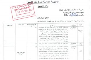 الجمهورية الجزائرية الديمقراطية الشعبية وزارة الصحة مديرية الصحة والسكان لولاية تيبازة معهد التكوين شبه طبي بتيبازة ads إعلان عن توظيف يعلن معهد التكوين شبه الطبي بتيبازة عن مسابقة للتوظيف على أساس الشهادة في الرتب المبينة أدناه: جميع مسابقات وإعلانات التوظيف نوفمبر 2025 إعلان عن …
