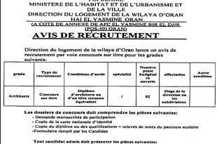 إعلان عن توظيف بمديرية السكن لولاية وهران