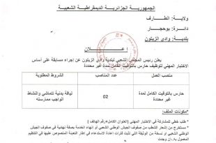 الجمهورية الجزائرية الديمقراطية الشعبية وزارة العمل والتشغيل والضمان الاجتماعي المفتشية العامة للعمل المفتشية الجهوية للعمل ورقلة ads إعلان عن توظيف تعلن المفتشية الجهوية للعمل بورقلة عن فتح توظيف على أساس الشهادة لفائدة المفتشية الجهوية للعمل ورقلة لمنصب الشغل المبين في الجدول أدناه كما يلي: …