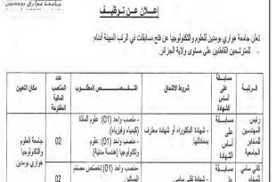 أكمل القراءة »اعلان عن توظيف بجامعة العلوم والتكنولوجيا هواري بومدين الجزائر العاصمة