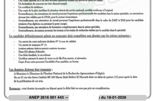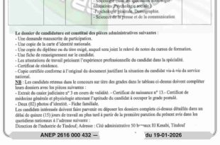 وزارة الثقافة والفنون المكتبة الرئيسية للمطالعة العمومية لولاية تيارت “محمد الميلي” مصلحة الإدارة والوسائل – فرع المستخدمين ads تيارت في: 21 جانفي 2026 إعـلان عن توظيف تعلن المكتبة الرئيسية للمطالعة العمومية لولاية تيارت “المجاهد محمد الميلي” عن فتح مسابقات توظيف بمكتبة “جاك بيرك” بفرندة …