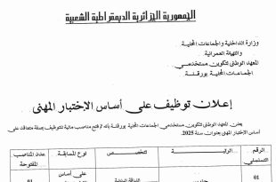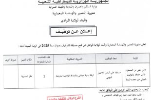 أكمل القراءة »إعلان عن توظيـف بمديرية التعمير والهندسة المعمارية والبناء لولاية الوادي
