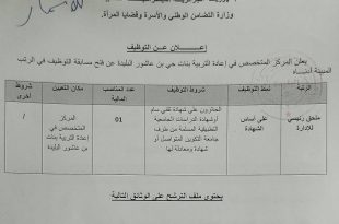 أكمل القراءة »إعلان عن توظيف بالمركز المتخصص في إعادة التربية بنات البليدة
