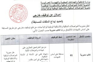 أكمل القراءة »اعلان عن توظيف بمديرية المواصلات السلكية واللاسلكية الوطنية
