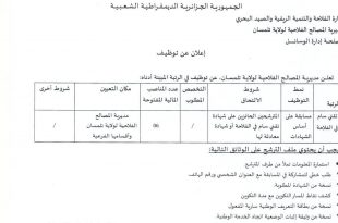 إعلان عن توظيف بمديرية المصالح الفلاحية لولاية تلمسان