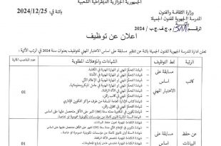 إعلان عن توظيف بالمدرسة الجهوية للفنون الجميلة