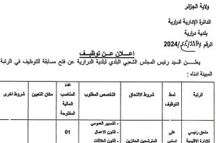 أكمل القراءة »إعلان عن توظيف ببلدية درارية ولاية الجزائر