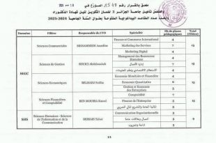 اعلان ads ملحق بالقرار رقم 1548 المؤرخ في 18 ديسمبر 2024 المتضمن تأهيل جامعة قالمة لضمان التكوين لنيل شهادة الدكتوراه عدد المقاعد البيداغوجية المفتوحة بعنوان السنة الجامعية 2025/2024 ملحق بالقرار رقم 1548 المؤرخ في 18 ديسمبر 2024 المتضمن تأهيل جامعة سكيكدة لضمان التكوين لنيل …