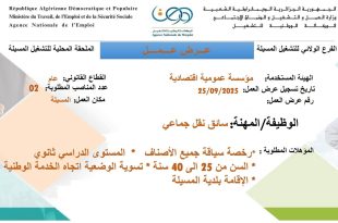 أكمل القراءة »مؤسسة عمومية إقتصادية توظف سائقي نقل جماعي
