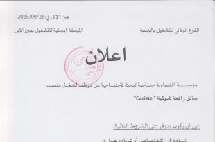 أكمل القراءة »مؤسسة اقتصادية خاصة تبحث لاحتياجها عن سائق رافعة شوكية Cariste