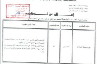 أكمل القراءة »اعلان عن مسابقة توظيف بمديرية الخدمات الجامعية لولاية البيض