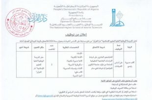 أكمل القراءة »إعلان عن توظيف بالمدرسة الوطنية العليا الإسلامية – جامع الجزائر