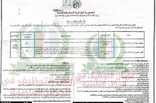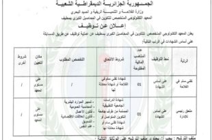 أكمل القراءة »إعلان عن توظيف بالمعهد التكنولوجي المتخصص للتكوين في المحاصيل الكبرى بسطيف