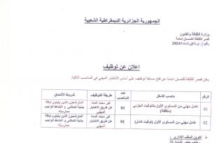 أكمل القراءة »إعلان عن توظيف في قصر الثقافة لتلمسان