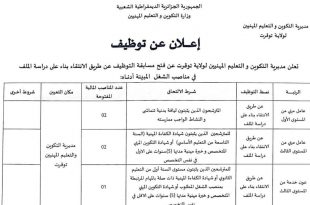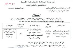 أكمل القراءة »إعلان عن توظيف بالمعهد الوطني المتخصص في التكوين المهني الإخوة الشهداء بكاكرة – عين البيضاء