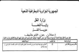 أكمل القراءة »إعلان عن توظيف بمديرية النقل لولاية النعامة