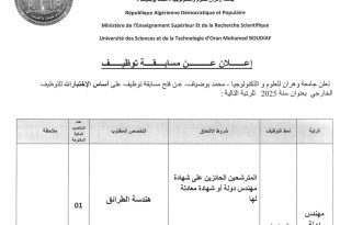 اعلان عن مسابقة توظيف بجامعة وهران للعلوم والتكنولوجيا