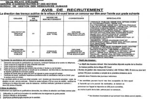 إعلان عن توظيف بمديرية الأشغال العمومية لولاية الوادي
