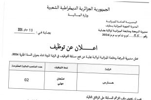 إعلان عن توظيف بمديرية البرمجة ومتابعة الميزانية لولاية بجاية