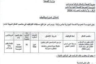 مديرية الصحة والسكان لولاية بومرداس تعلن عن توظيف