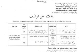 الجمهورية الجزائرية الديمقراطية الشعبية وزارة الصحة مديرية الصحة والسكان لولاية البليدة المؤسسة العمومية للصحة الجوارية بالأربعاء ads إعلان عن توظيف يعلن مدير المؤسسة العمومية للصحة الجوارية بالأربعاء عن تنظيم مسابقة توظيف على أساس الشهادة للالتحاق بالرتب حسب الجدول المذكور أدناه: جميع مسابقات وإعلانات التوظيف …