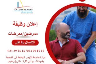 اعلان عن توظيف ads في إطار تعزيز فريقنا الطبي، نبحث عن ممرضين/ممرضات مؤهلين للانضمام إلى عيادة فاطمة الازهر. المؤهلات المطلوبة:شهادة ممرض/ممرضة .الخبرة تعتبر ميزة إضافية.مهارات تواصل جيدة وحس الاستماع.القدرة على العمل ضمن فريق وتحمل ضغوط العمل.الدقة والشعور بالمسؤولية. كيفية التقديم: يرجى إرسال سيرتكم الذاتية …