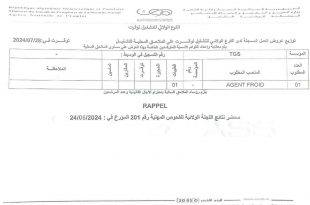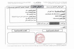 الفرع الولائي للتشغيل توقرت عرض عمل ads توزيع عروض العمل ليوم 2024/07/28 ملاحظة: يتم معالجة وإعداد قوائم المترشحين الخاصة بعروض العمل على مستوى الملاحق المحلية للتشغيل مع ضرورة احترام التقسيم المبين في الجداول أدناه إعلان عن مسابقة توظيف بالمعهد التقني لزراعة البقول والزراعات الصناعية …